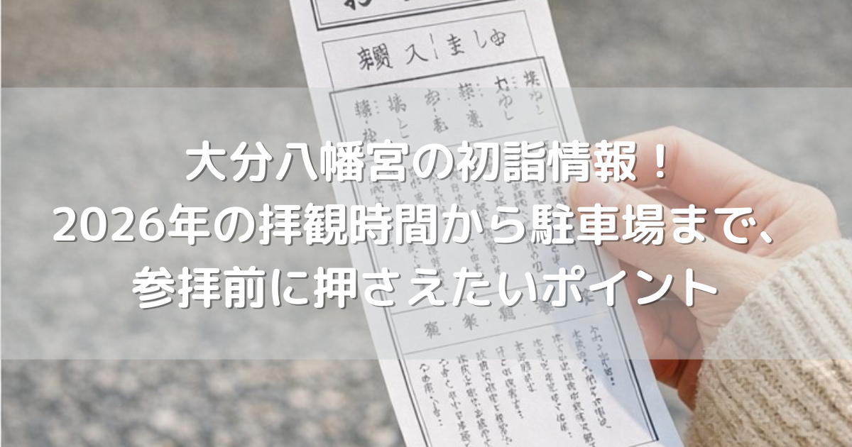 今回の記事では、大分八幡宮の初詣情報や混雑状況など、参拝前には押さえておきたいポイントをまとめてご紹介したいと思います。