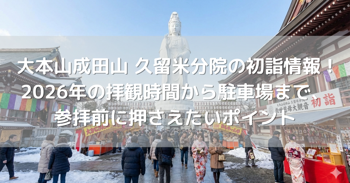 今回の記事では、大本山成田山 久留米分院の初詣情報や混雑状況など、参拝前には押さえておきたいポイントをまとめてご紹介したいと思います。