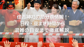 イベント 住吉神社の節分祭情報!日程・豆まき時間から混雑の目安まで徹底解説 福岡市博多区にある住吉神社は、全国に2,000以上ある住吉神社の始祖ともいわれる非常に歴史深い古社です。そんな由緒ある神社で毎年行われる「節分祭」は、博多の街に春を告げる恒例行事として親しまれています。国の重要文化財に指定された本殿を背景に... 2026.01.18 イベント