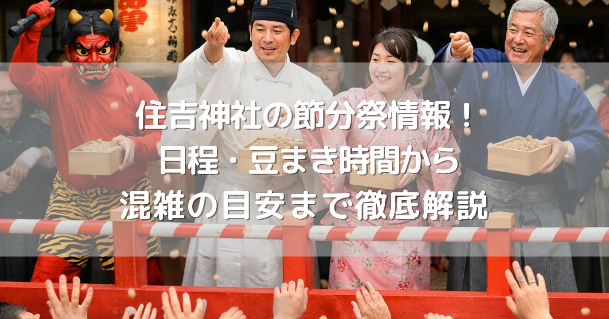 今回の記事では、住吉神社の節分祭の日程、豆まき時間から混雑状況など、押さえておきたいポイントをまとめてご紹介したいと思います。