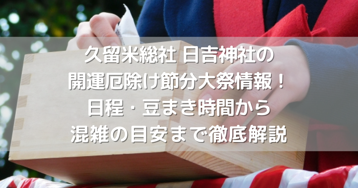 今回の記事では、久留米総社 日吉神社の開運厄除け節分大祭の日程、豆まき時間から混雑状況など、押さえておきたいポイントをまとめてご紹介したいと思います。