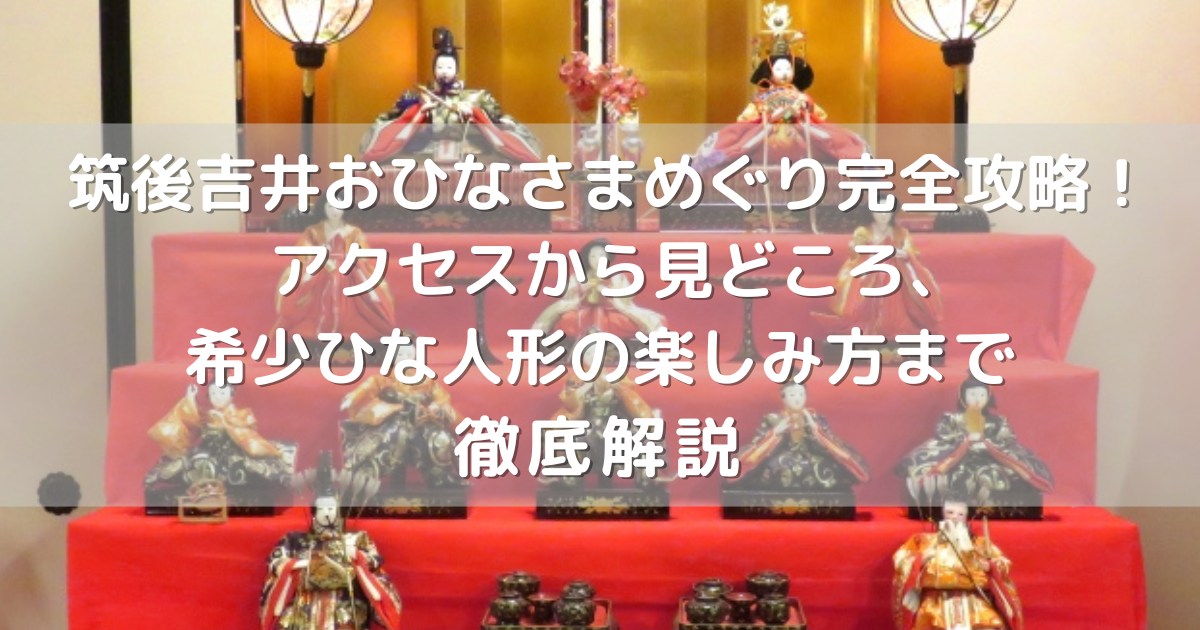 今回の記事では、筑後吉井おひなさまめぐりの日程、見どころやイベント情報、便利な駐車場など、押さえておきたいポイントをまとめてご紹介したいと思います。