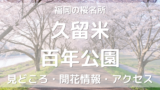 ✅見どころ:耳納連山の麓に位置し、山を背に咲き誇る約170本の桜が楽しめます。園内を流れる谷川のせせらぎを聞きながら、落ち着いた雰囲気でお花見ができます。