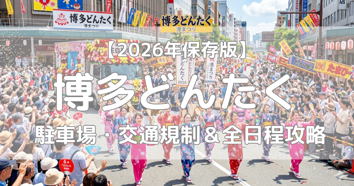 💡 博多どんたく2026 攻略ガイドこの記事は「1日目の見どころとスケジュール」に特化した詳細ガイドです。 全日程のタイムスケジュールや、車で来る方に必須の「交通規制・駐車場情報」をまとめて確認したい方は、まずはこちらの完全ガイドをご覧くだ…